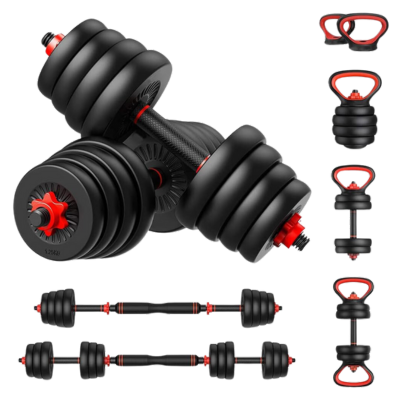 Kit Halteres 6 Em 1 Peso Musculação Até 50kg Ajustável Preto