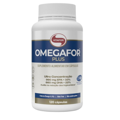 OMEGAFOR PLUS é um produto à base de óleo de peixe extraído de águas frias, profundas e não poluídas, rico em ácidos graxos de cadeia longa, da série ômega 3.